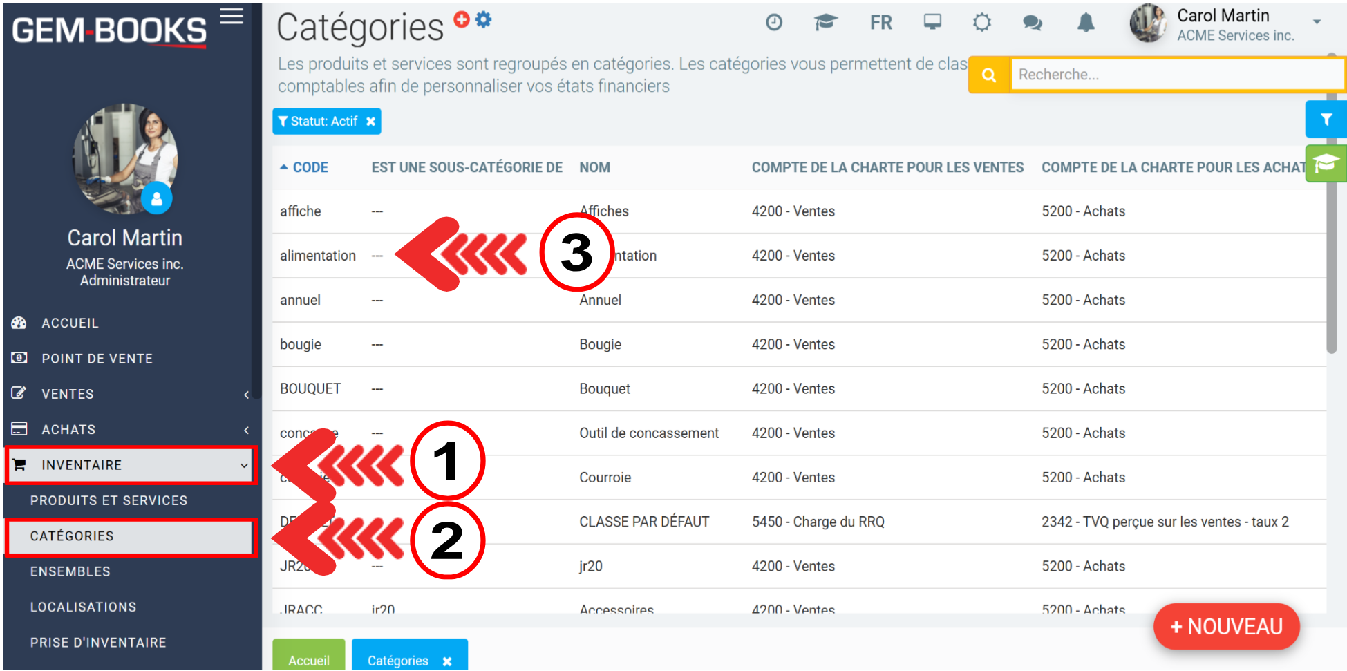 Pour ce faire, rendez-vous dans le menu Inventaire > Catégories et choisissez une catégorie.