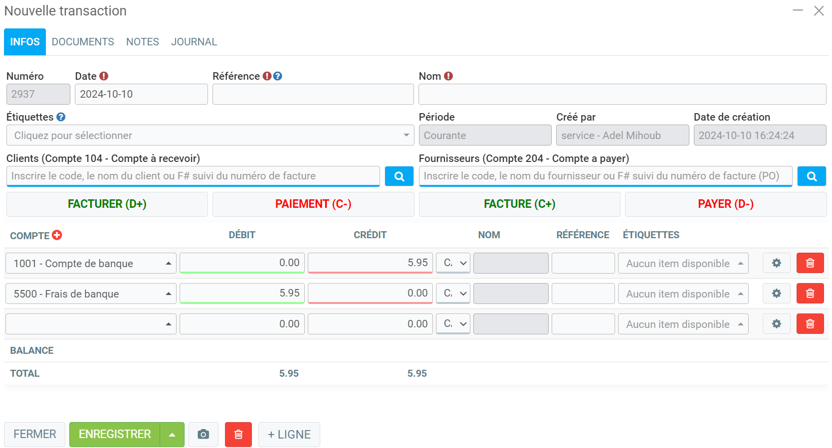 Pour créer une nouvelle transaction, cliquez sur Comptabilité > Nouvelle transaction.