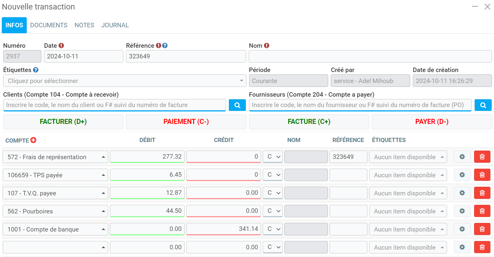 Nous vous suggérons aussi d'avoir un compte comptable de dépense pour les pourboires qui ne sera pas taxable.