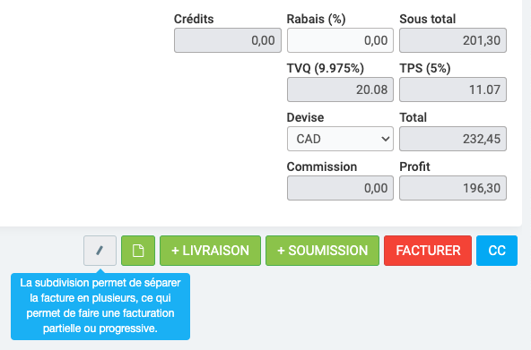Il peut parfois arriver qu'on doive créer une facture pour seulement une partie d'une vente et non la totalité de celle-ci.