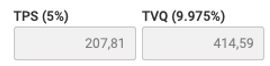 Tous les items de cette vente sont actuellement assujettis aux règles de taxation du Québec. La TPS ainsi que la TVQ s'appliquent donc par défaut sur tous les items inclus dans celle-ci et le total pour chacune des taxes facturées est indiqué au bas de l'écran, à droite...