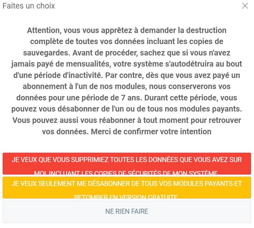 - Je veux seulement me désabonner de tous vos modules payants et retomber en version gratuite.