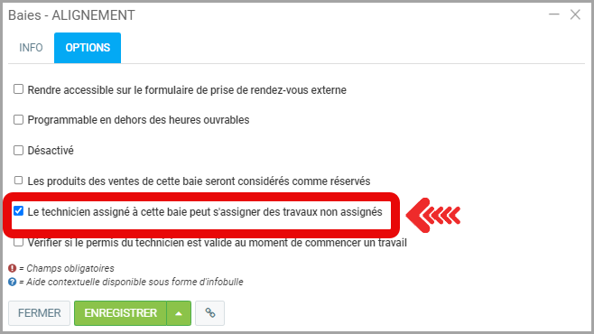 Avertissement à la facturation permet d'avoir un avertissement lorsqu'aucun technicien n'est assigné à la tâche.