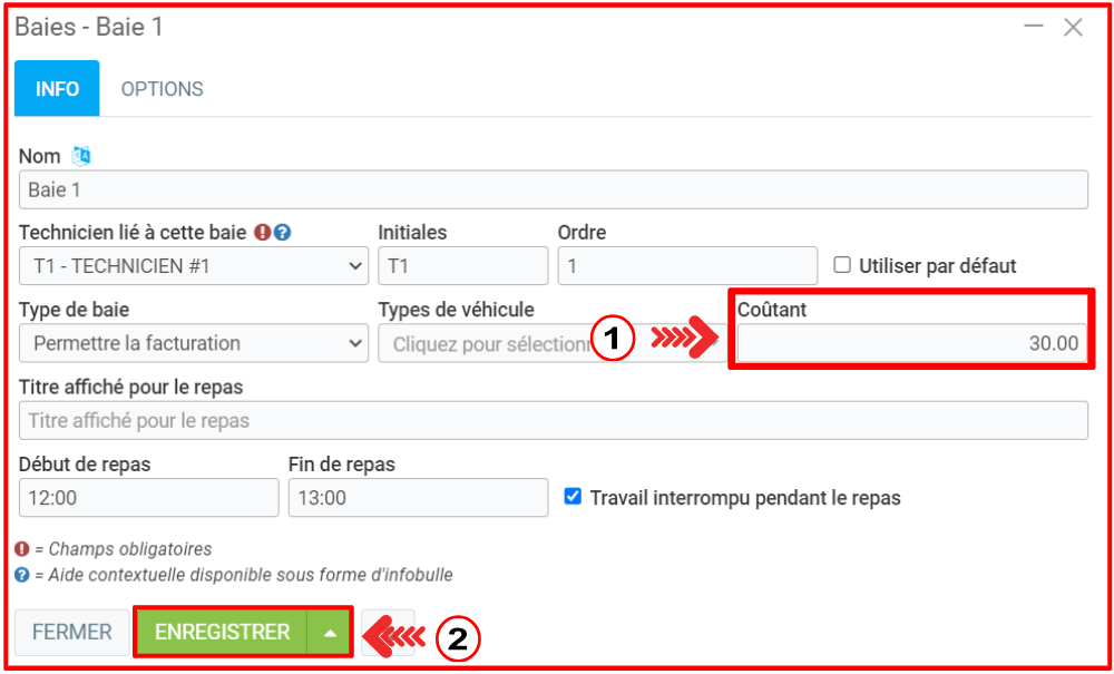 - En multipliant le temps réel par le taux horaire de la baie/technicien, on obtient le coûtant.