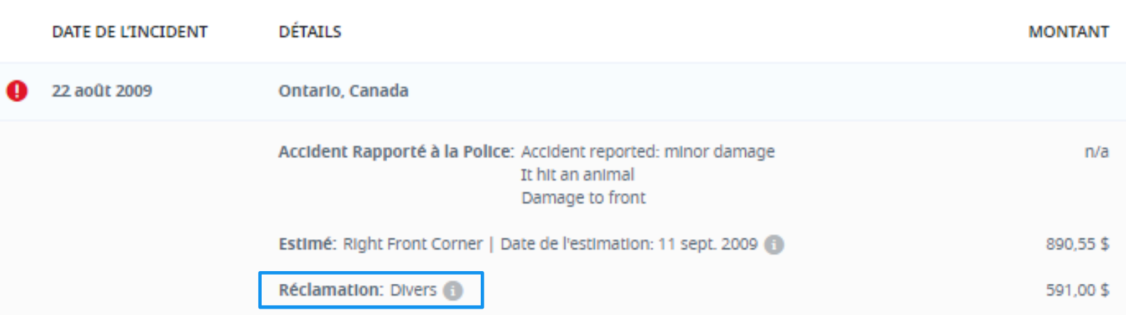 CARFAX - Le rapport d'historique de véhicule - Réclamations diverses