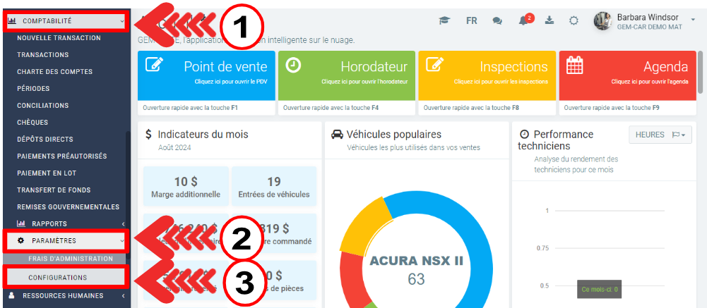 Allez dans le menu Comptabilité > Paramètres > Configurations.