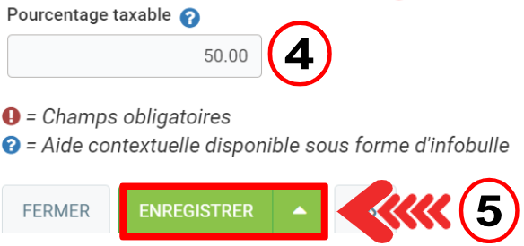 Le pourcentage taxable indique à GEM-CAR de diviser les taxes à 50% pour vous aider à composer votre transaction.