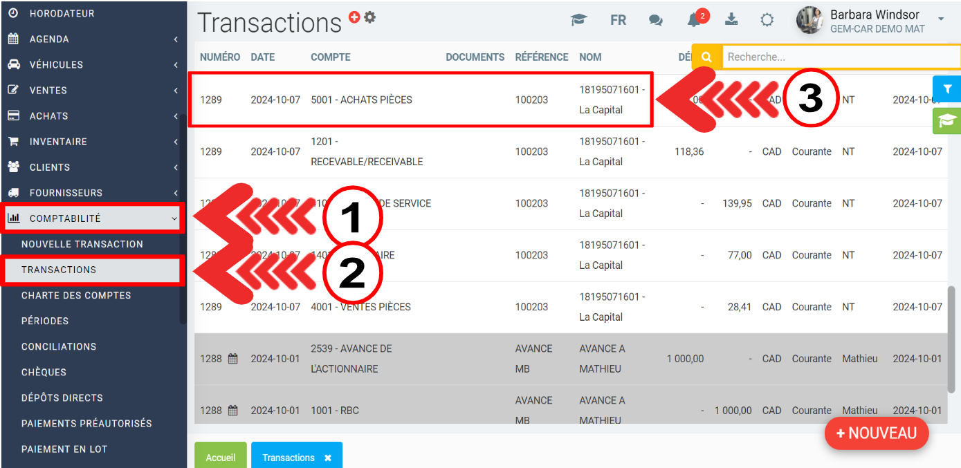 Pour ce faire, dans le menu de gauche, cliquez sur Comptabilité > Transactions.