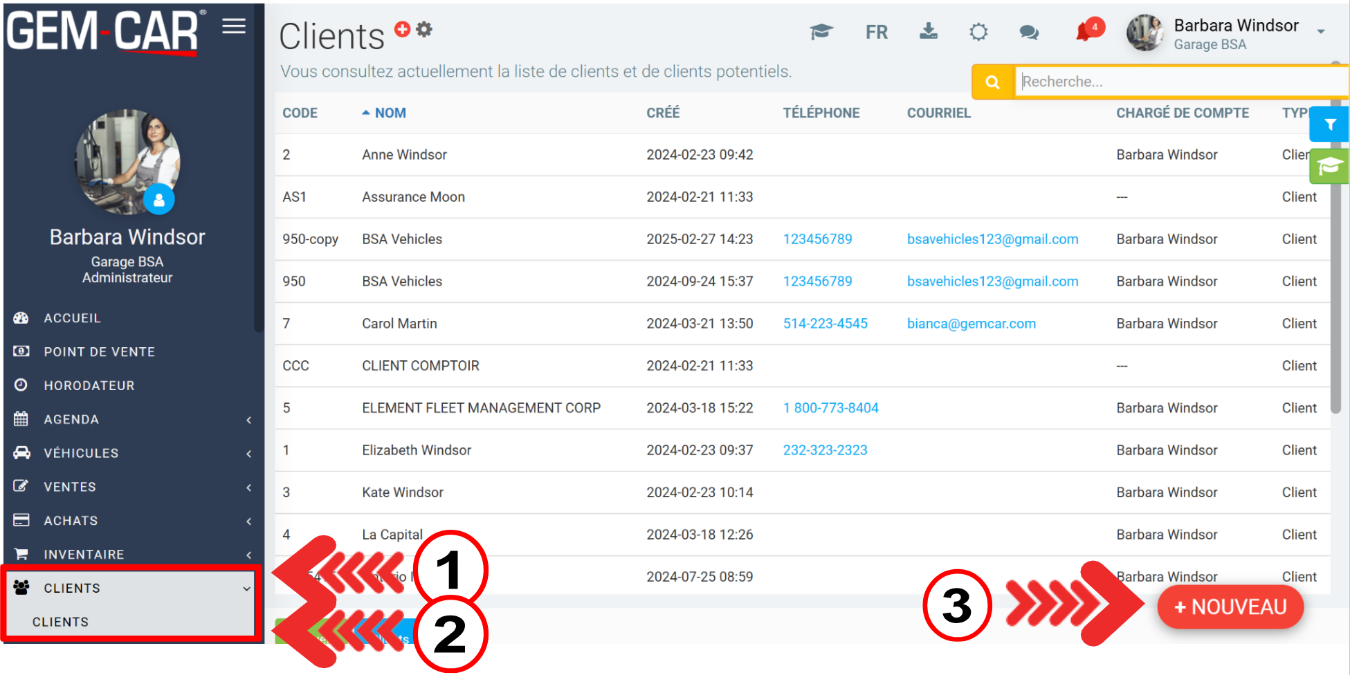 Dans le menu de gauche, cliquez sur Clients > Clients > + Nouveau.