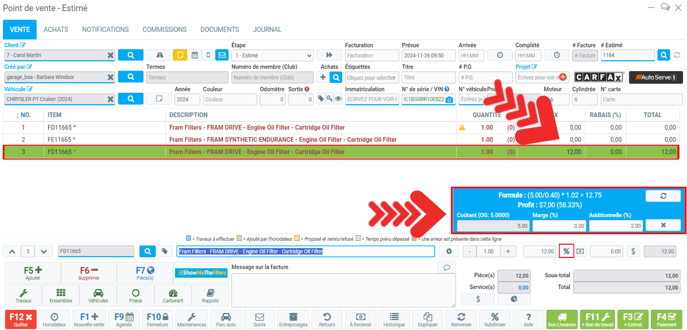 Ensuite, vous serez redirigé vers le Point de vente. Cliquez sur ShowMeTheFilters, entre F7 Pièce(s) et Message sur la facture.