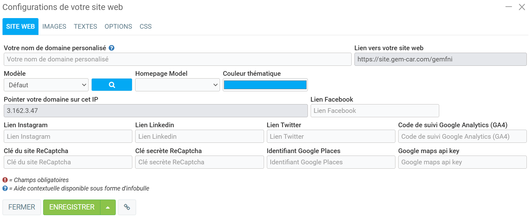 Comment configurer mon site web GEM-FNI