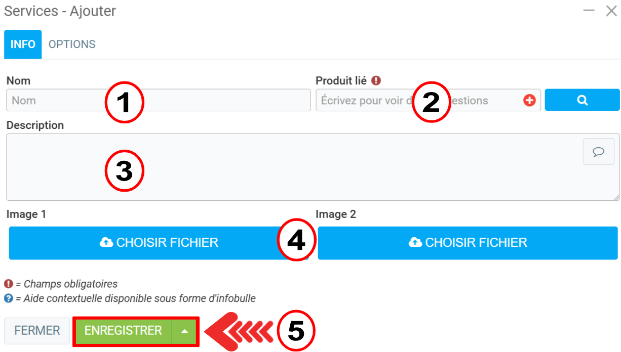 Dans l'onglet Info, saisissez les informations suivantes: