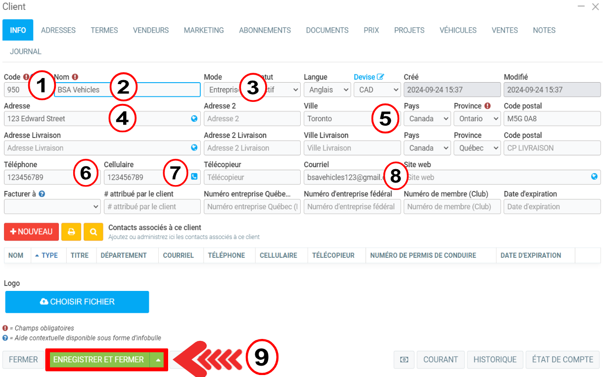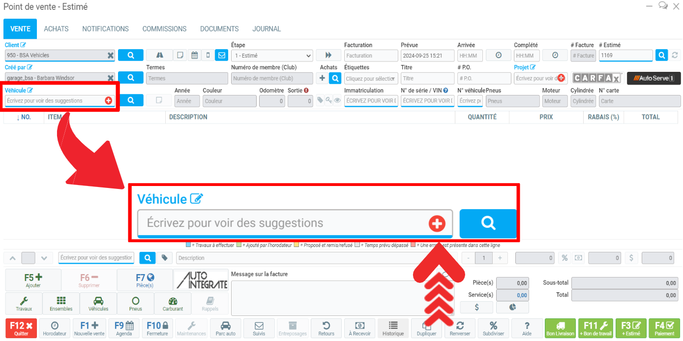 Cliquez ensuite sur le panier rouge à côté du bouton Enregistrer et fermer, et suivez les étapes de la FAQ suivante: Créer un véhicule usagé.