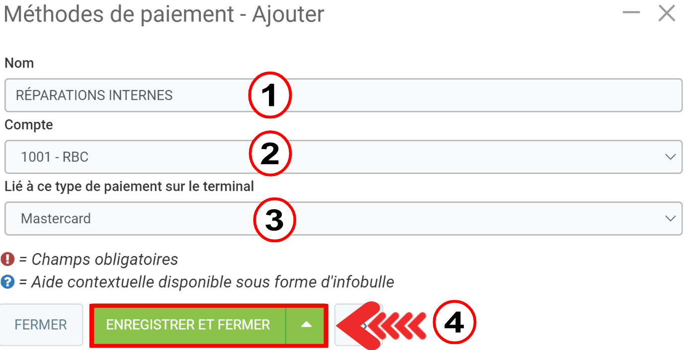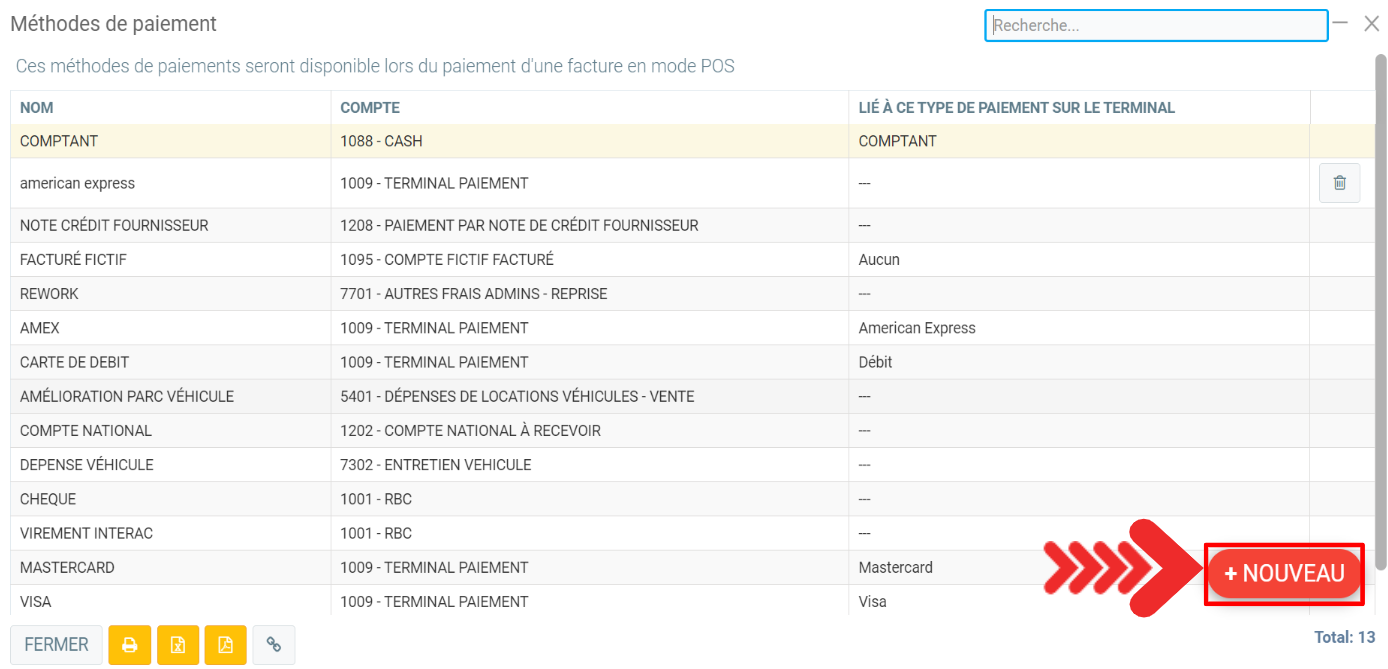 Important: Avant de procéder, veuillez consulter votre comptable. Il doit vous confirmer si cette procédure est adaptée à votre cas et le compte GL qui doit être utilisé pour ce nouveau mode de paiement.