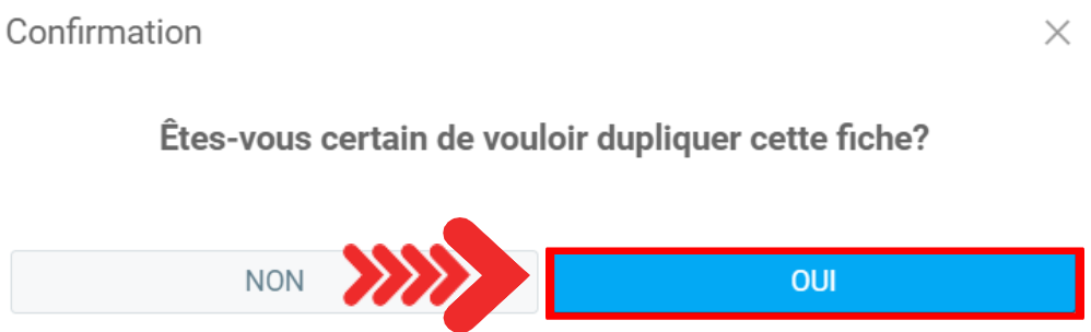 Cliquez sur Oui pour confirmer que vous souhaitez dupliquer la fiche.