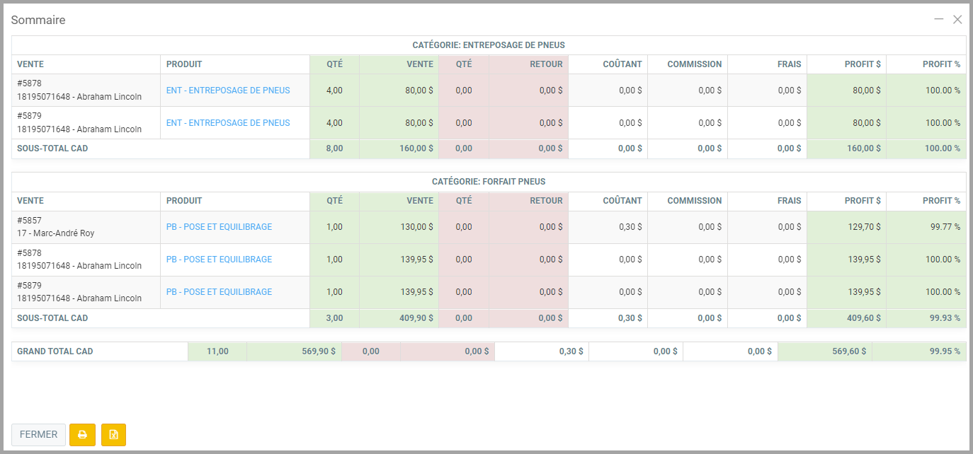 - Vous pourriez également Filtrer par fournisseur la vente des pneus. De cette façon, vous pourriez obtenir le sommaire des ventes pour les Pneus neufs achetés chez un seul fournisseur.