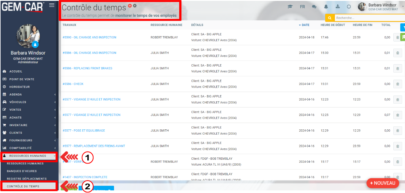 Pour faciliter le décompte et la facturation des heures prestées, GEM-CAR propose des rapports de temps précis, tenant compte des heures saisies dans l'horodateur.