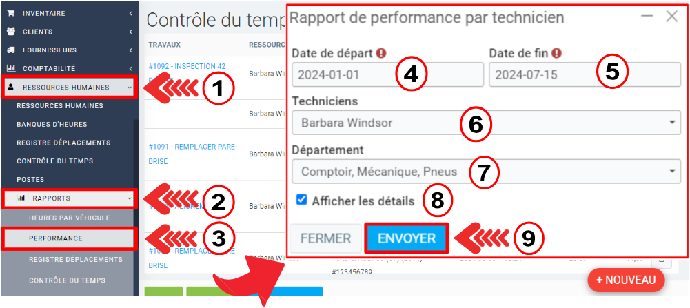La génération d'un rapport sur les performances des techniciens à l'aide des données du système Horodateur permet d'obtenir des informations précieuses sur l'efficacité et la productivité de la main-d'œuvre.