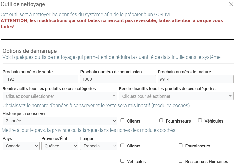 La première chose à laquelle il faut faire attention est l'avertissement en rouge: ATTENTION, les modifications qui sont faites ici ne sont pas réversible, faites attention à ce que vous faites! Utilisez donc cet outil avec précaution et vérifiez les données avant de le sélectionner.