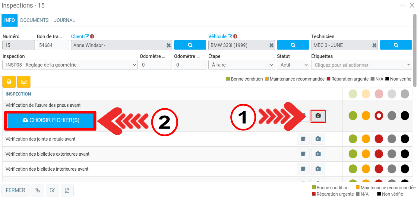 Pour insérer une photo, qui permettra de prouver certaines informations relatives à l'inspection, cliquez sur l'icône photo. Cliquez ensuite sur Choisir le(s) fichier(s).
