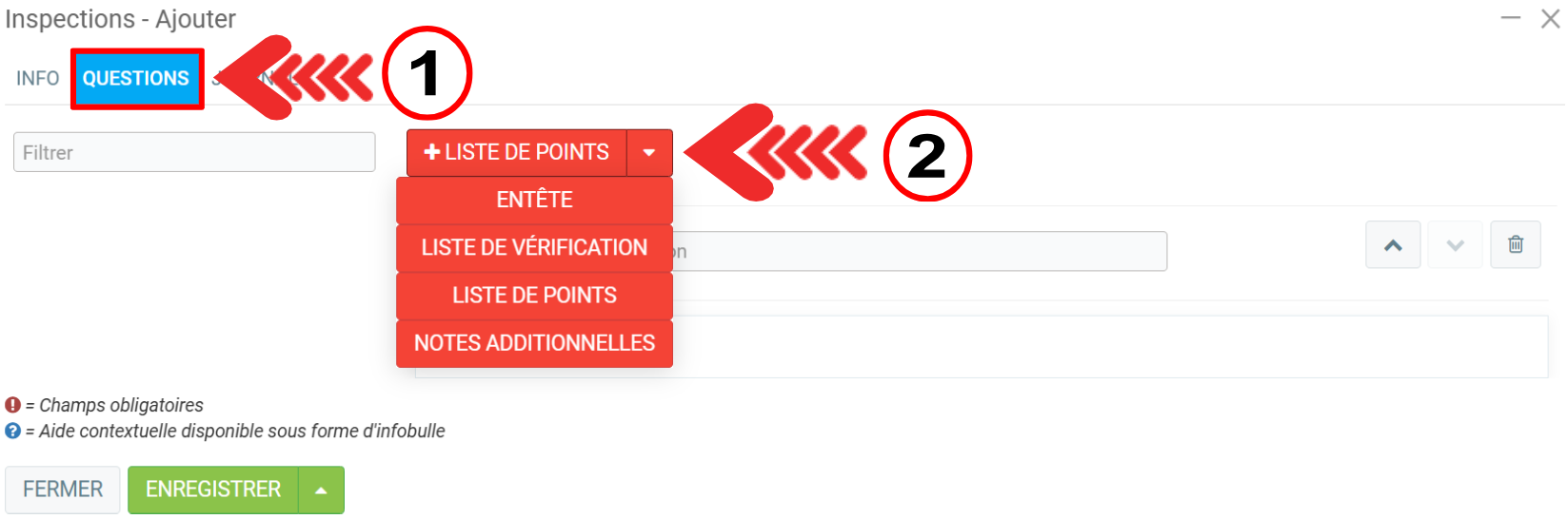 Personnalisation des inspections - menu Rédacteur d'inspections