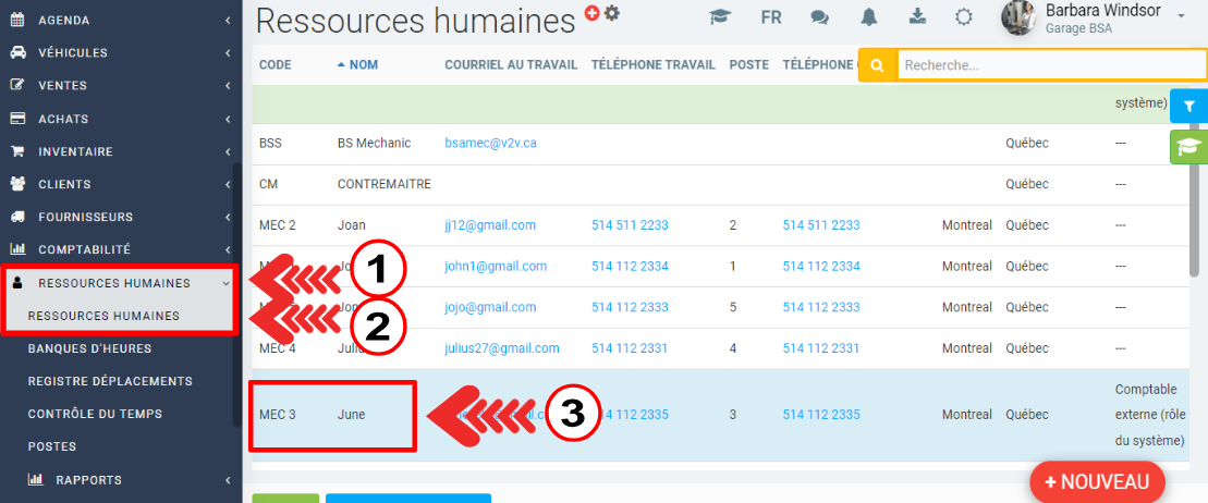 Dans le menu principal, cliquez sur Ressources Humaines > Ressources Humaines.