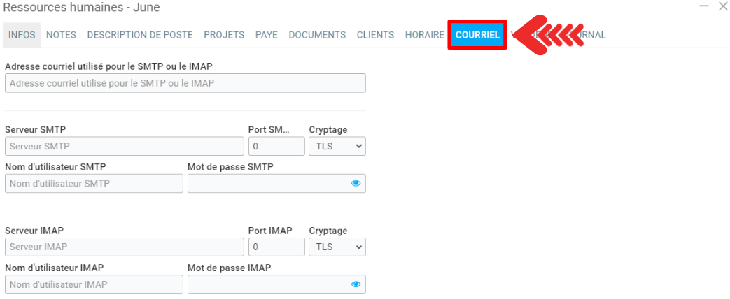 Configuration de la boîte de courriel pour définir le courriel des employés