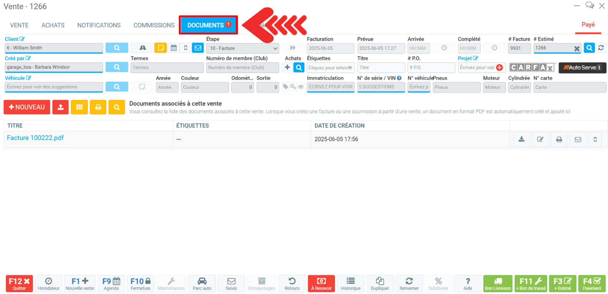 La facture apparaît dans l'onglet Documents du Point de vente.