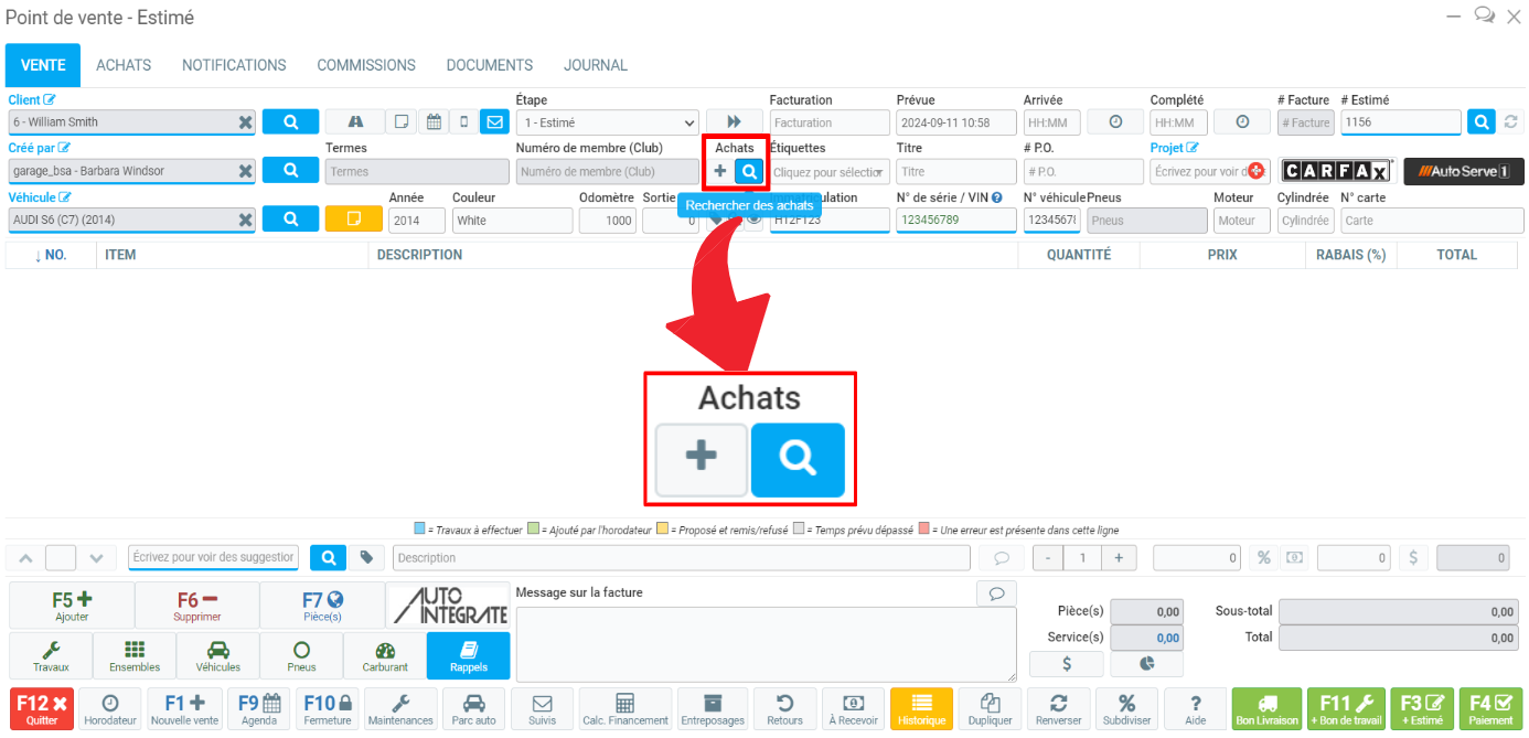 Si vous cliquez sur la loupe, GEM-CAR ouvrira une fenêtre avec la liste des achats.