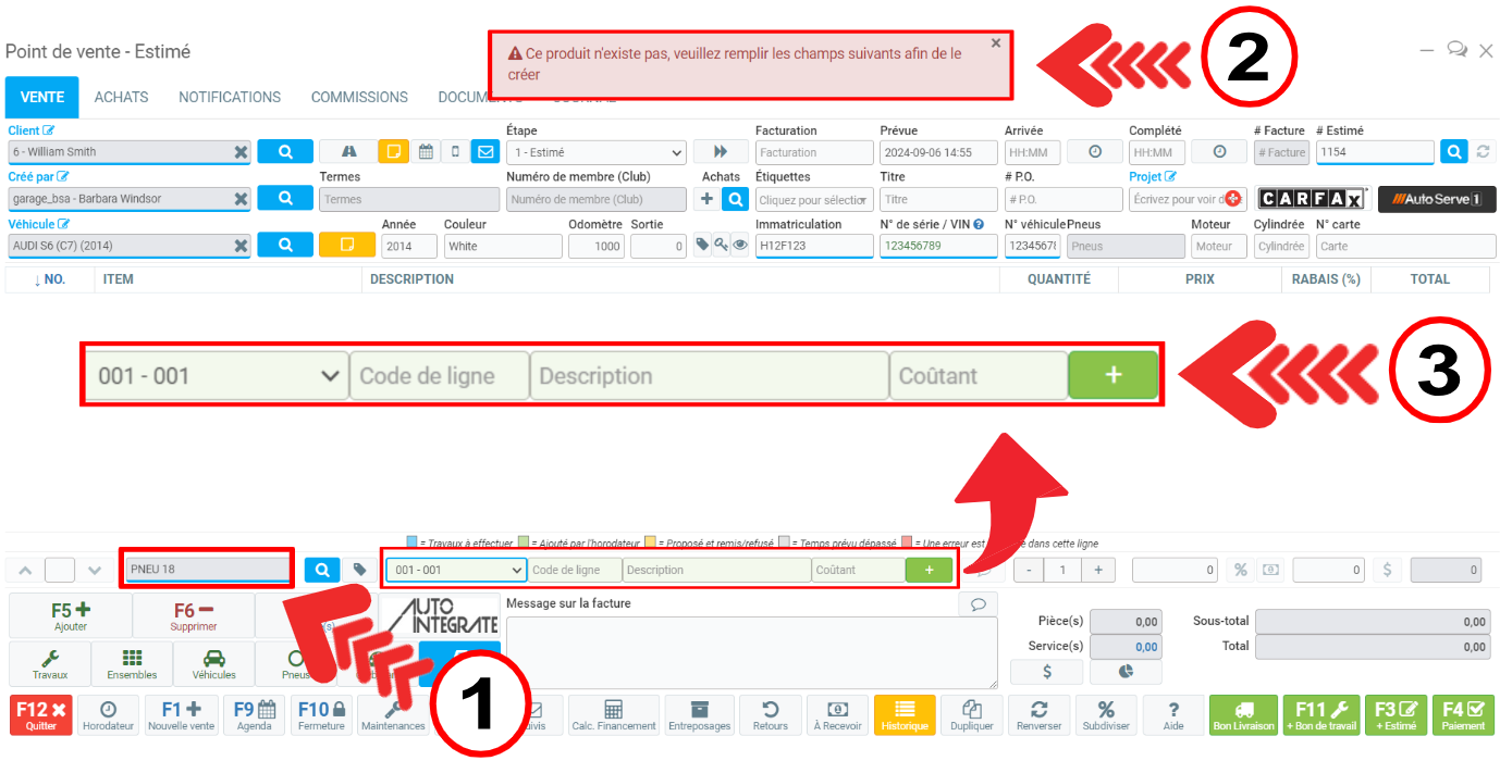 Le message suivant apparaît alors en rouge: "Ce produit n'existe pas. veuillez remplir les champs suivants afin de le créer".
