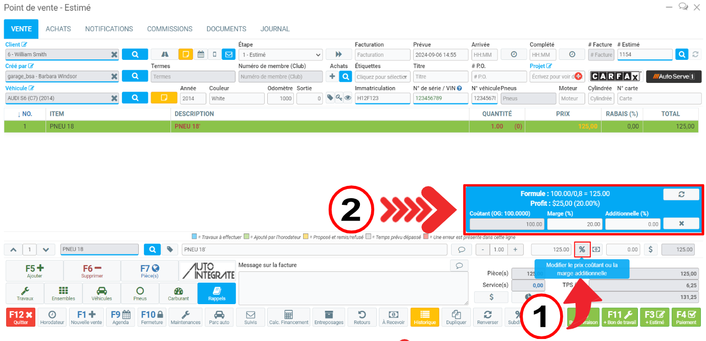 Comment mettre une marge sur une pièce ajoutée manuellement au Point de vente