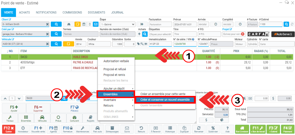 Dans le Point de vente, ajoutez tous les articles que vous souhaitez dans votre estimé.