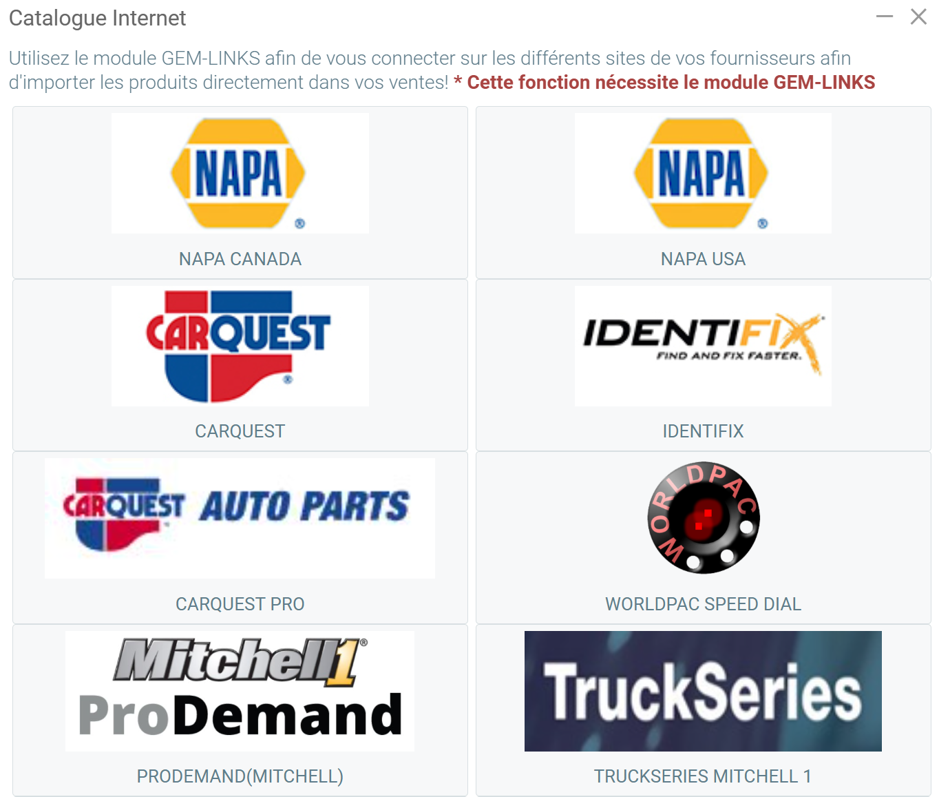 Sélectionnez un fournisseur de pièces. Depuis le site du fournisseur, ajoutez des pièces à vôtre panier.