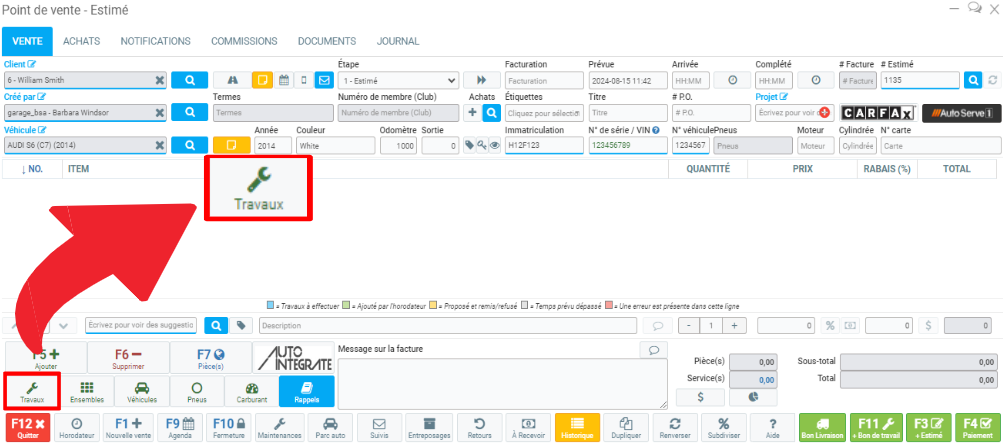 Dans le Point de vente, cliquez sur le bouton Travaux, dans le coin gauche de l'écran, à côté du bouton Quitter (F12).