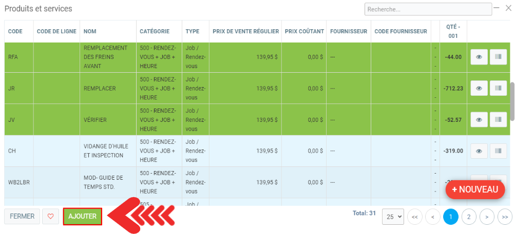 Sélectionnez le ou les produit(s), ils deviennent verts.