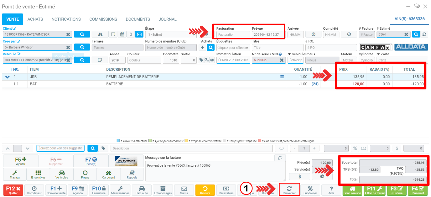 Lorsque vous cliquez sur le bouton, GEM-CAR vous demandera de confirmer le renversement avec le message: ''Êtes-vous certain de vouloir renverser cette vente?''