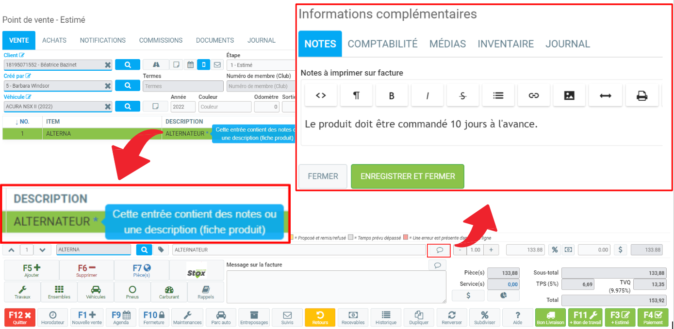 - Cochez la case ''Inclure cette note lors de l'ajout de cet article à une vente''.