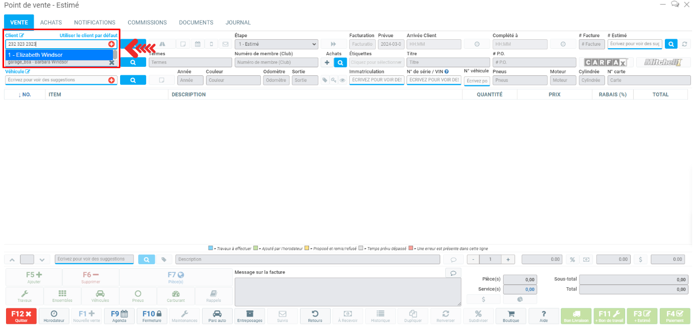Retrouver un estimé spécifique d'un client à partir du Point de vente