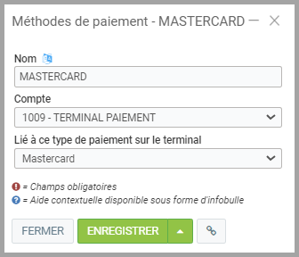 Liez finalement le paiement au terminal en le sélectionnant dans le menu déroulant.