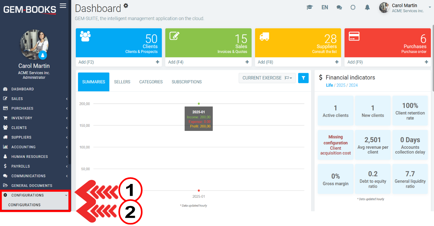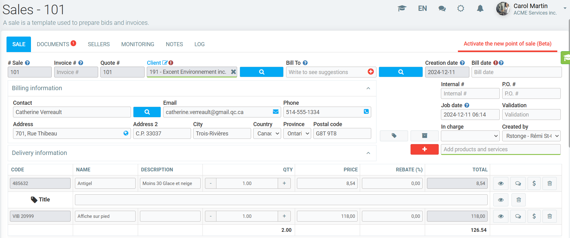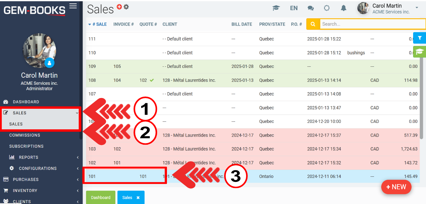 To check the configuration, click on Sales > Sales and go to an invoiced sale.