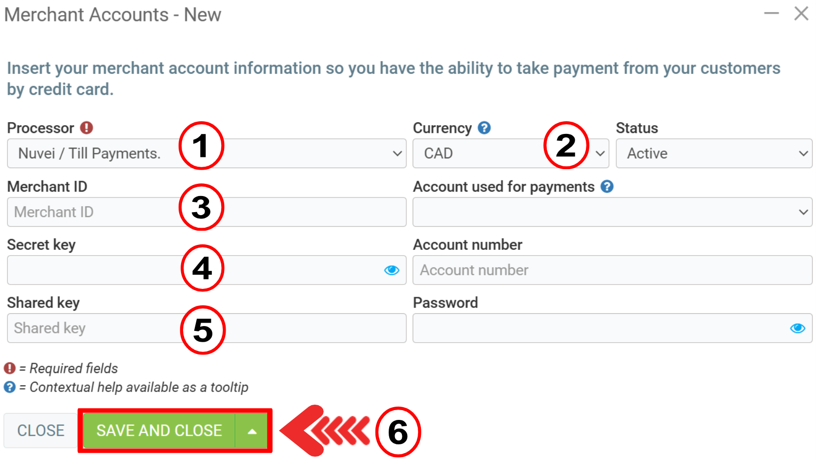Complete the form using the information provided by your payment processor: