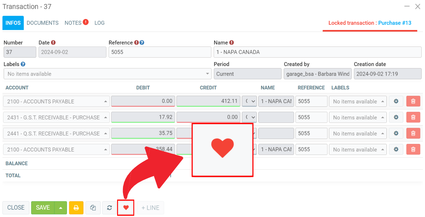 When you have a transaction that you will repeat often, or when a transaction serves as a template, we invite you to make it a “Favorite” transaction.