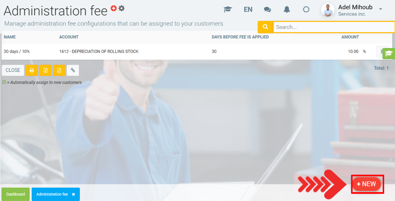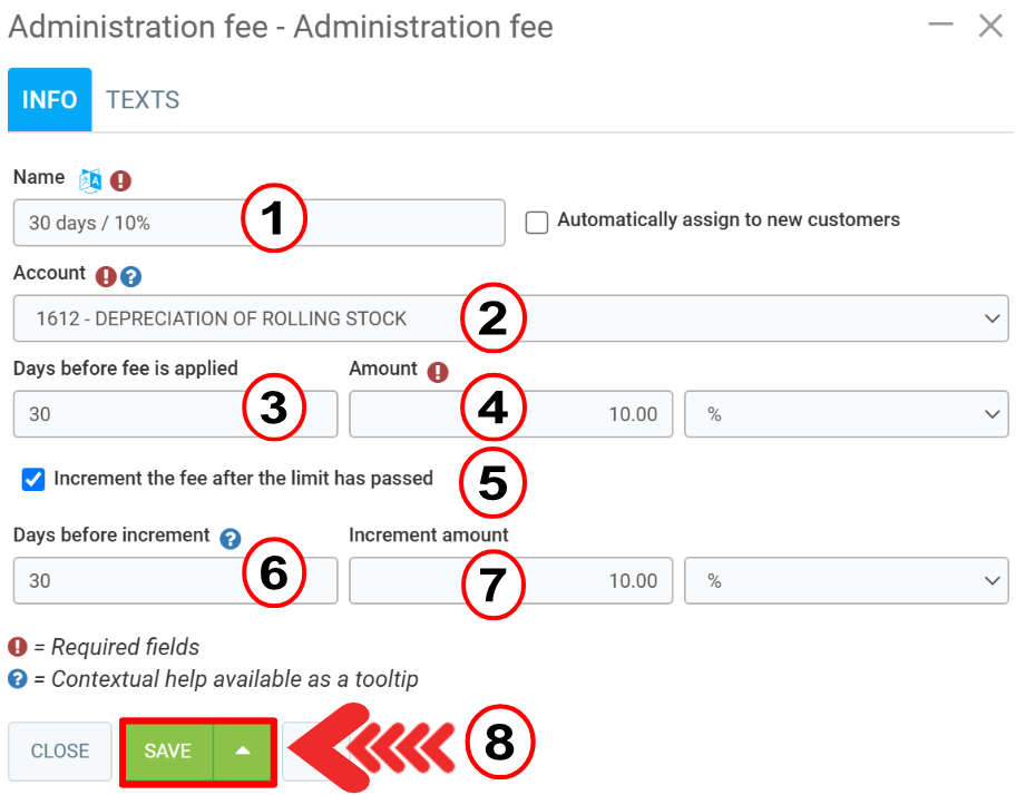 Select the administration fee and click on Save.
