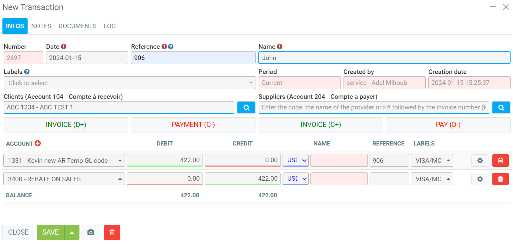 If the balance is credit, please enter a negative amount, if the balance is debit, please enter a positive amount. Repeat the operation for each of your accounts, except accounts receivable and payable. These 2 accounts will be processed in the next step.