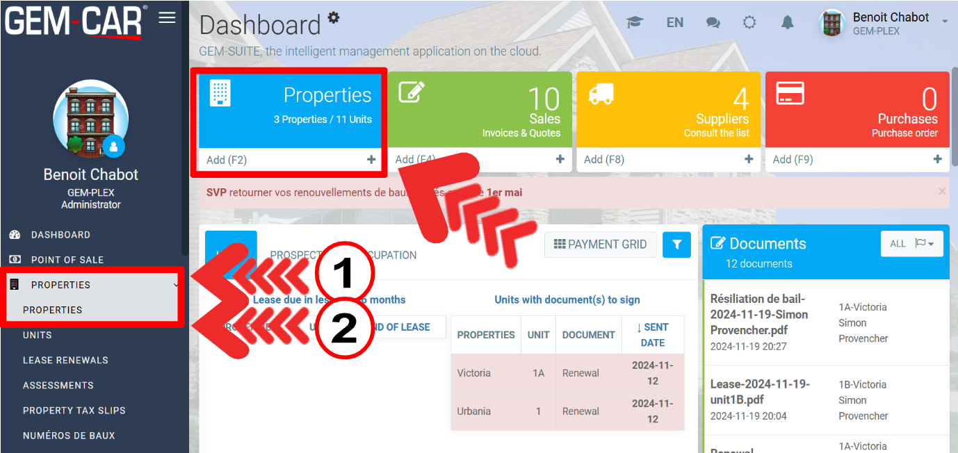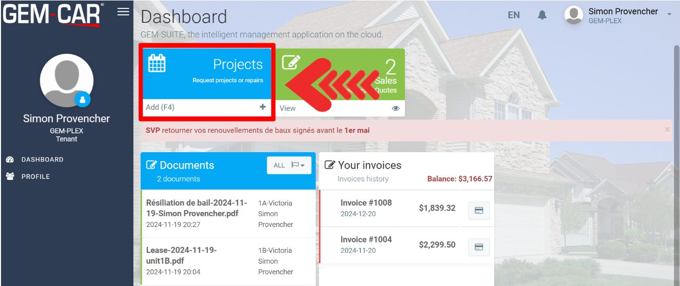 The GEM-PLEX module is a main module (EX: GEM-CAR, GEM-TMS, GEM-BOOKS) for building owners who wish to rent out units.