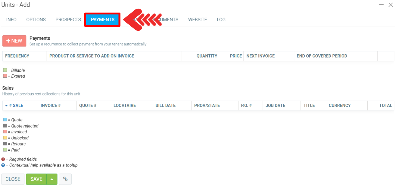 In the Payments tab, you can quickly create a recurrence on the system, so that rent money is automatically withdrawn from the tenant's account or credit card.