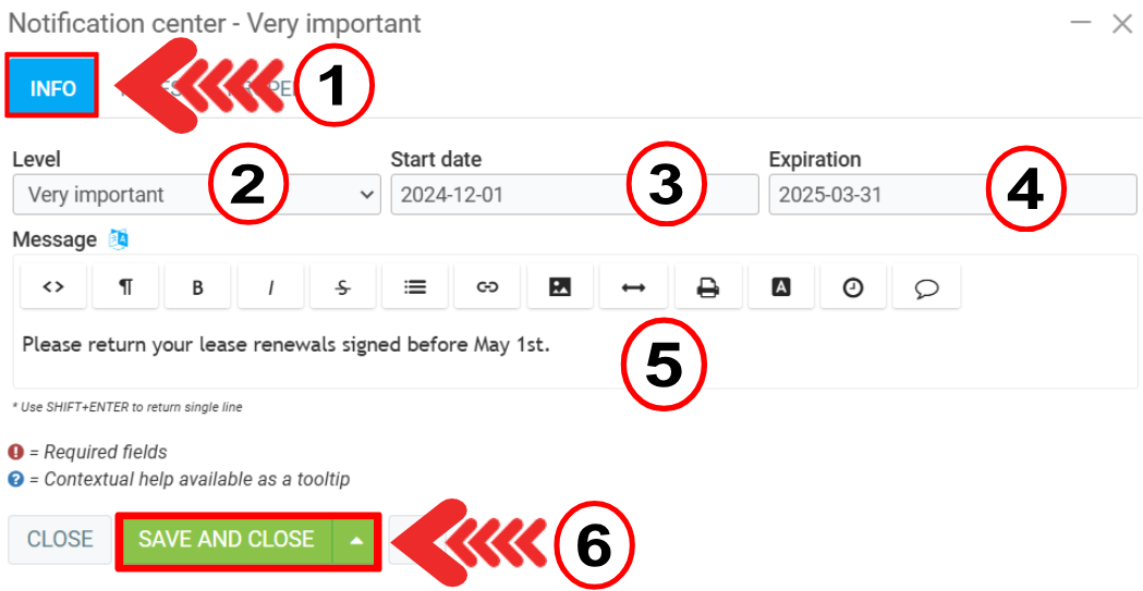Communications > Notification Center: Internal communications can now be targeted to tenants in a specific unit.