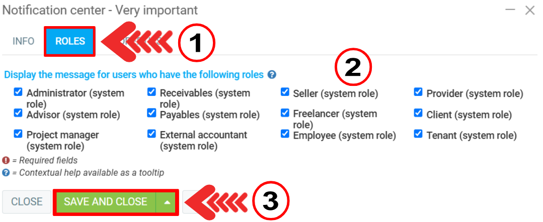 In the Notification Center > Roles tab, you have the following information: “Display the message for users who have the following roles”.