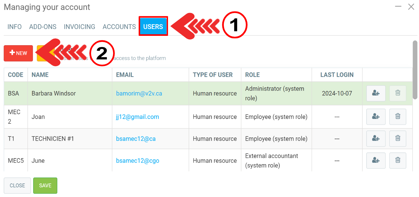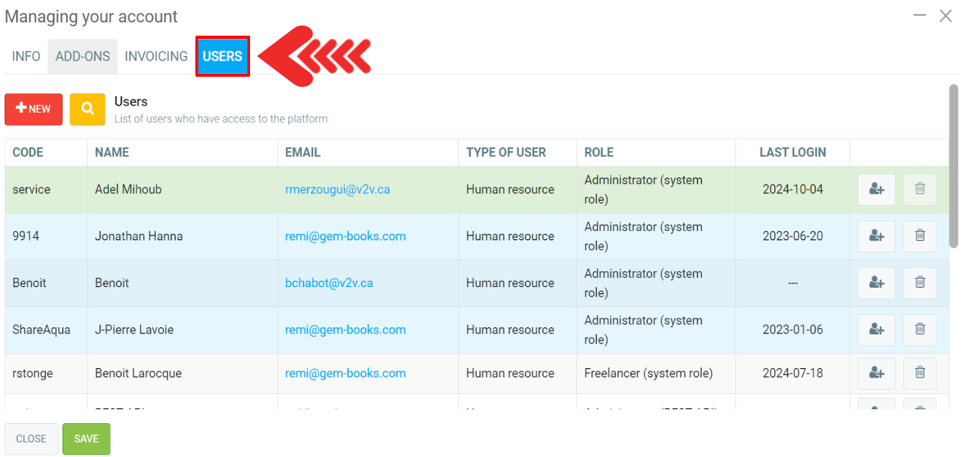 To modify or create access for your contacts to your company on GEM-BOOKS, whether they are human resources, clients, or suppliers, follow one of the procedures below.