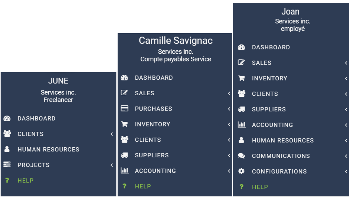 This way of managing and defining user-specific access explains why Adel Mihoub, who is the company's administrator, will see this exhaustive menu appear.